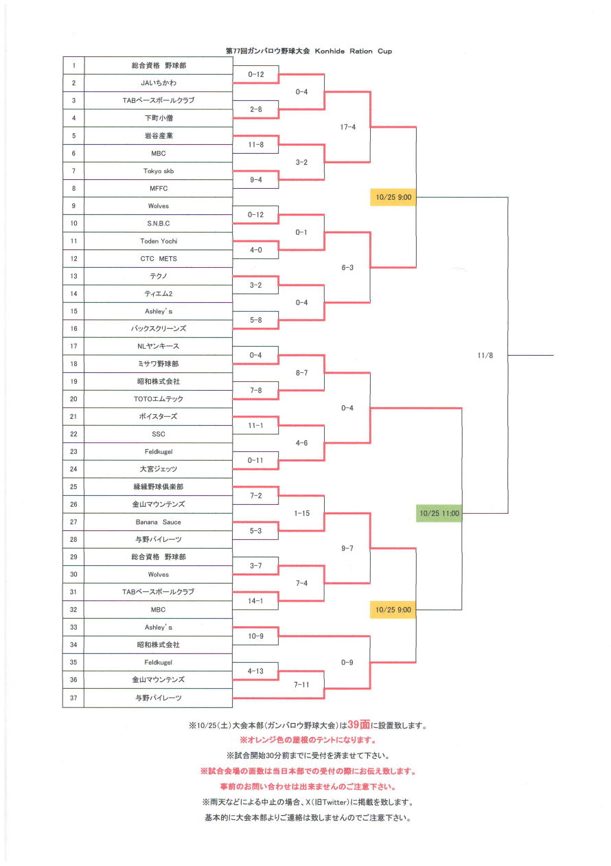 ガンバロウ野球大会のご案内 ガンバロウの5つの魅力 1、土曜日に関東で行われるトーナメント方式の野球大会です。 2、基本は大宮健保グランド使用します。 3、グランド・審判を全て大会が手配。 4、大会本部に全日程でスタッフがグランドにいます 5、敗者復活抽選会や、野球以外のイベント、など楽しい催しがあります |
